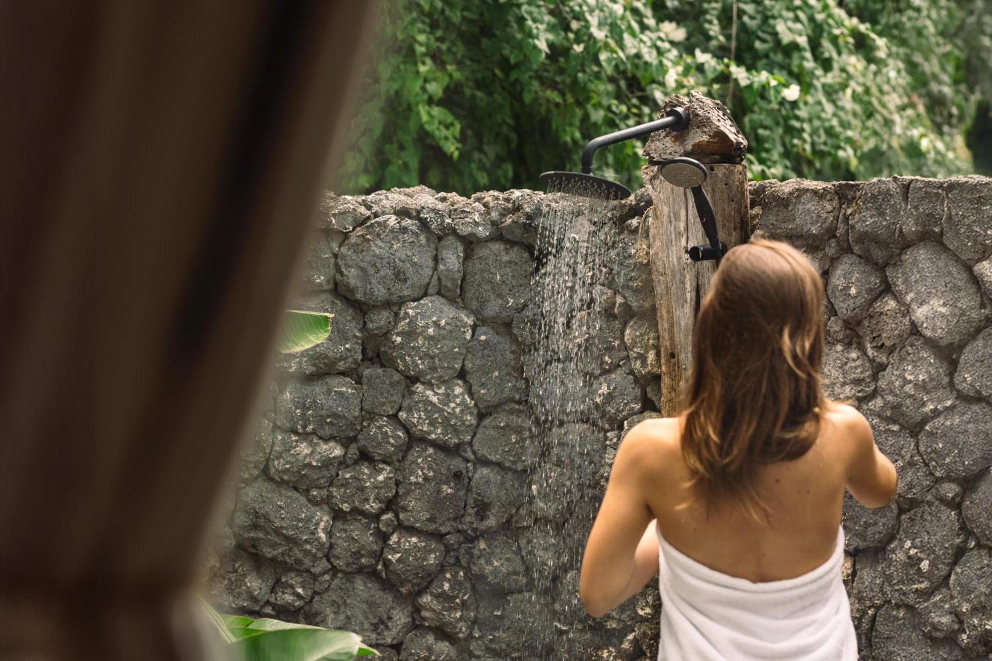 Banheiro parcialmente aberto